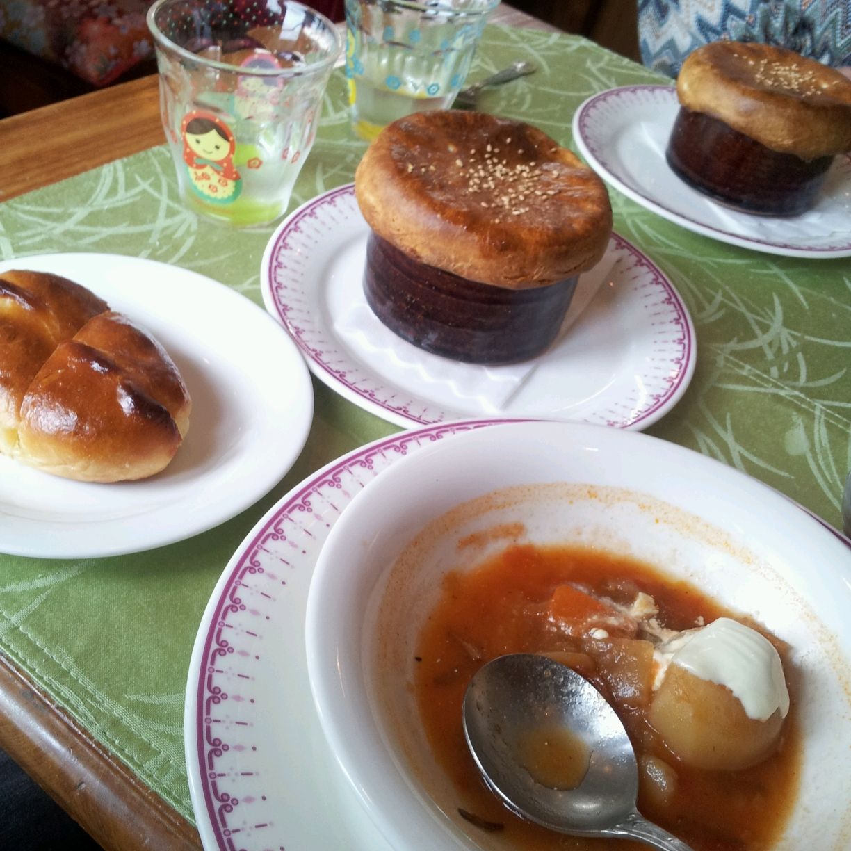 マトリョーシカの可愛い絵の付いたコップでお水が出て来て、特にマトリョーシカが好きな訳では無いんだけど、妙に可愛くて気に入ってしまった