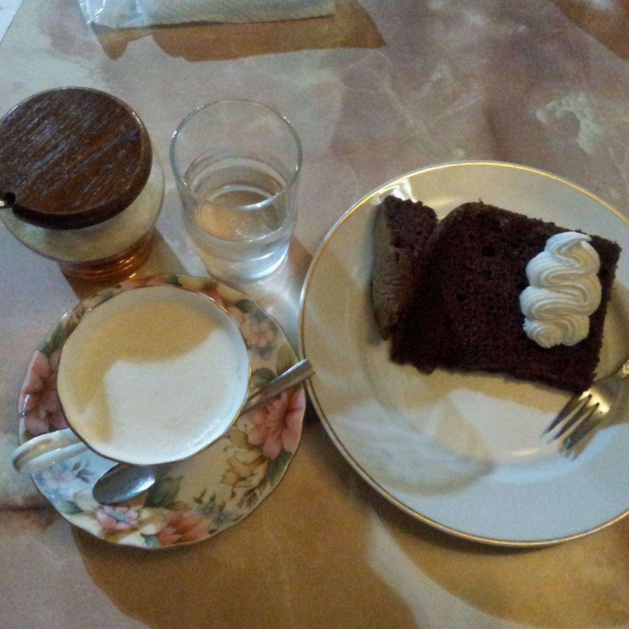 本日のシフォンケーキは「よもぎ」と「チョコレート」と言う事だったので私は「チョコレートシフォンケーキ」と「ウインナーコーヒー」で…